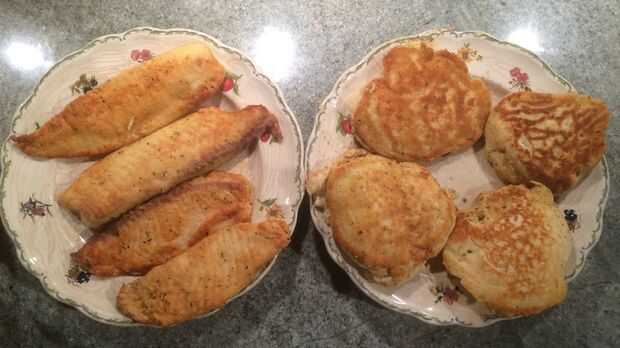 Doughie pasteles son panqueques salados de lo restante de la tilapia. Comenzaron como simplemente una manera de usar la mezcla de harina extra por freír la mezcla y el agua y han ido evolucionando en algo realmente super delicioso!