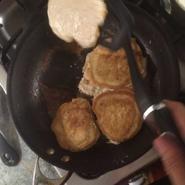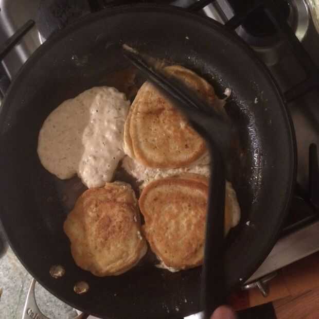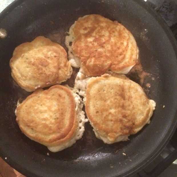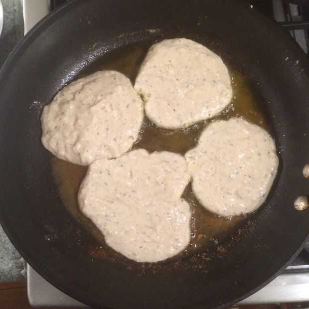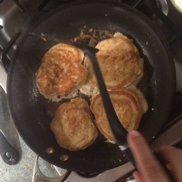 5. en la misma sartén que usaste para el pescado, cocinar la pasta como panqueques. Te llevarás sabor impresionante de ponerlos en la misma sartén del pescado.