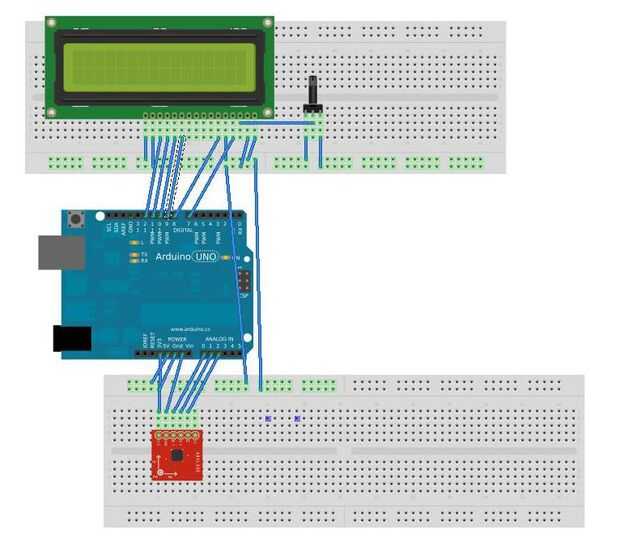 Ahora es el momento de conectar tu LCD. El diagrama debe ser capaz de mostrar cómo cablear para arriba, o puedes leer este tutorial de adafruit. Recuerde conectar el LCD en una placa separada.