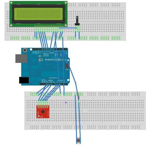 Usted ahora está listo para el primer botón del alambre. Primero debe soldar dos cables a dos de los contactos en el botón. Entonces, siga el diagrama para alambre para arriba. Este botón es el botón