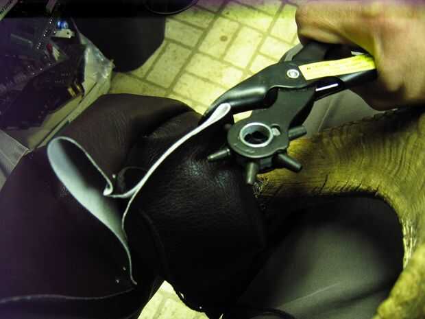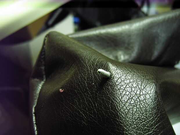 Siguiente: Vuelva a colocar los cuernos. Esto debería ser fácil ya que los orificios pretaladrados y aprovechados, pero probablemente tendrá que hacer un agujero a través de la piel donde cada tornillo va (cuadro 2). Luego, atornillar en los cuernos.