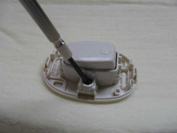 Un timbre ordinario se desarma para introducirele una coneccion, se aflojan los tornillos.