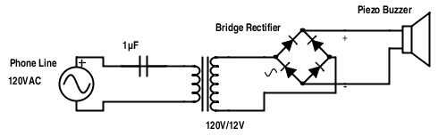 El condensador se coloca en serie con el bobinado primario del transformador para evitar que dibujo corriente directa y señal de que la línea está ocupada. Cuando se recibe una llamada la tensión bajó y rectificada para encender el zumbador.