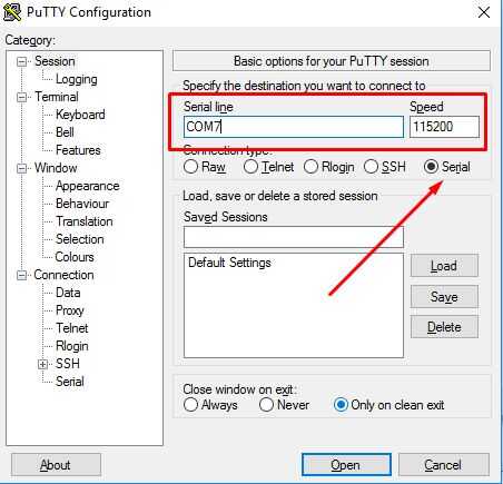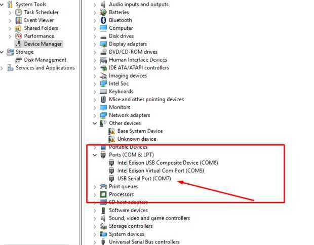 Enchúfalo en tu tablero de Edison a su ordenador portátil/PC y de masilla de lanzamiento. Selecciona el tipo de comunicación serie y entrar en Puerto número así como la velocidad es 115200 para Intel Edison. Para saber que junta de Edison número de puerto está conectado para ir a dispositivo -> Administrador de sección de COM y LPT -> USB puerto Serial COM X(where X is a number). En mi caso es COM 7. [VER IMAGEN]
