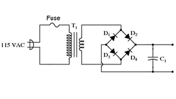 Un timbre de puerta inalámbrico de CA va a tener un convertidor DC AC a 120 voltios AC en una señal pequeña de DC (generalmente cerca de 12 voltios). Para bajar la tensión, puede usar un transformador o sólo un resistor de la energía. Entonces para convertir la señal AC de onda sinusoidal a una serie de pulsos de CC, suelen utilizar cuatro diodos dispuestos como un rectificador de puente de Plaza. Por último se añade un condensador para suavizar los pulsos de DC en la señal de DC más constante.