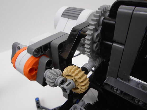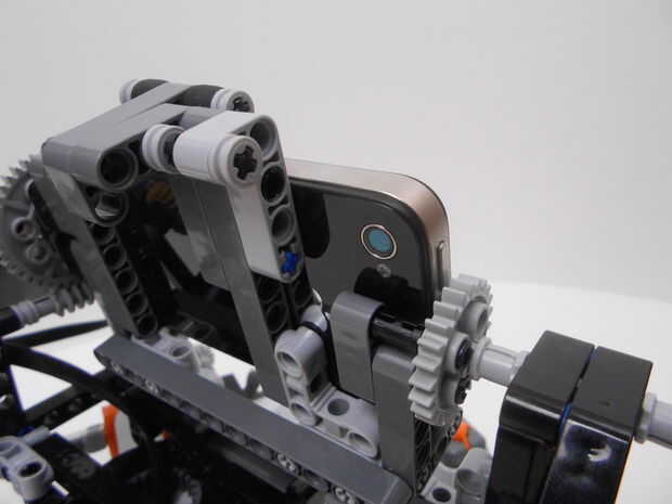 La vertical (arriba y abajo) rotación es controlada de manera muy similar a la rotación horizontal. También consta de un par de engranajes de piñón y un engranaje de gusano. Este servo se conecta al iPhone con un cociente del engranaje de 67:1 que permite una mayor exactitud que la rotación horizontal.