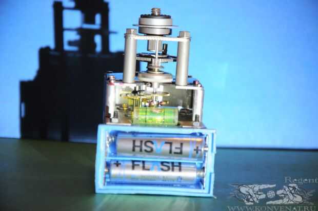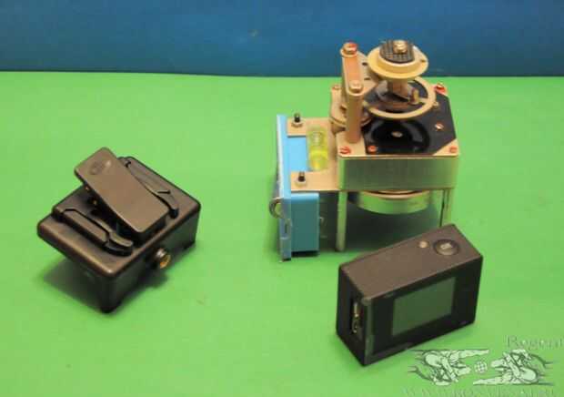 Él me consiguió en el relé temporizador Soviética viejo dentro del motor demostró a la CA 220V 50 Hz. Al encender el circuito, el temporizador de rueda hace una revolución completa en unos 5 minutos. Con los dispositivos fueron retirados contacto pares, unidad de solenoide y abrazaderas de flechas. En el asiento desocupado fue instalado en el compartimiento de pilas excavado en los coches de los niños en la radio. Micro conjunto fue en ninguna parte, así que decidí encender el dispositivo mediante la instalación de la batería, así cerrando el circuito de alimentación. Para un ajuste más preciso en el horizonte pegué nivel de burbuja. Para fortalecer el caso para el mecanismo de rotación de cámara, corte parte de la manija y taladre el agujero. Entonces tomé una rosca estándar para pulgadas y presiona en el agujero resultante. Para evitar que se raye, yo pegado a la almohadilla de base alrededor del tornillo. El mecanismo del temporizador está presente una característica interesante. La unidad de la cámara no se fija directamente al eje del piñón y es libre de girar alrededor de su eje, y el movimiento del piñón se transmite a la base de la cámara a través de pasador vertical en el engranaje y la placa horizontal en la zona del eje de la cámara. El perno visible fotografía, girar la plataforma de la cámara sí mismo. Es muy conveniente porque puede tirar el vídeo con una primera base fija, entonces la sonda llega a la placa base, la cámara se moverá y haz video animado. He intentado quitar el vídeo de la prueba. En un tiempo cuando no había ningún viento - e incluso subí un video sin tirones, y cuando yo estaba rodando en clima ventoso - cámara sensible, sacudidas por el viento.