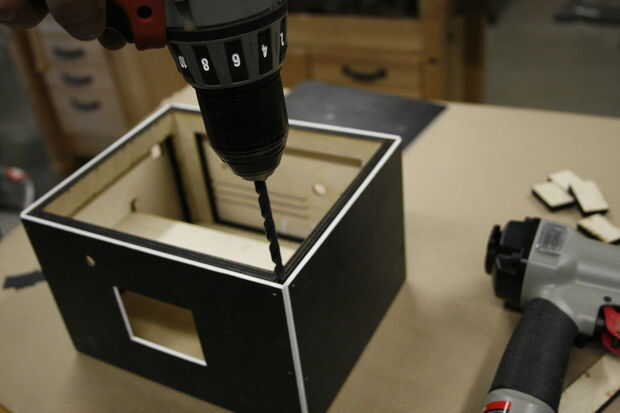 Para el panel superior, usé un martillo (no acero) a golpear los imanes en la parte inferior del panel. Encajan muy bien. Sin adhesivo necesitada.