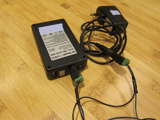 Esta marca de batería tiene un gato de la misma entrada y la salida, por lo que manipulado un mecanismo simple que tiene un interruptor de tres posiciones. En la posición superior, la batería de 12V suministra energía al monitor a través de los cables de vídeo.