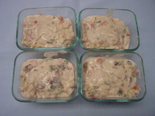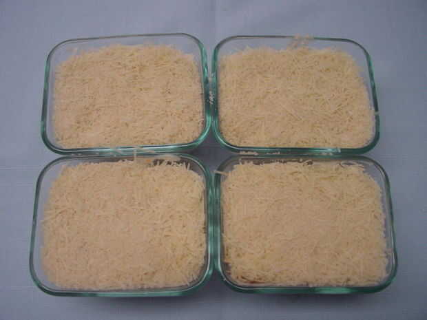 4. dividir en 4 platos horno individuales de Pyrex.