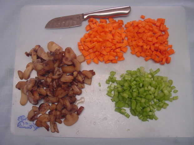 1. cortar setas (si es necesario) y trocear el apio y las zanahorias.