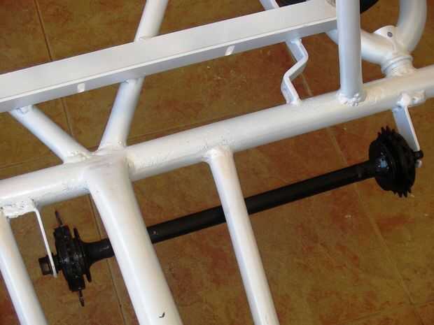 El eje trasero está vinculado a la izquierda que rueda trasera a través de una unidad Final de 1:1 configurar mediante piñones de rueda libre de 18T estándar 2.