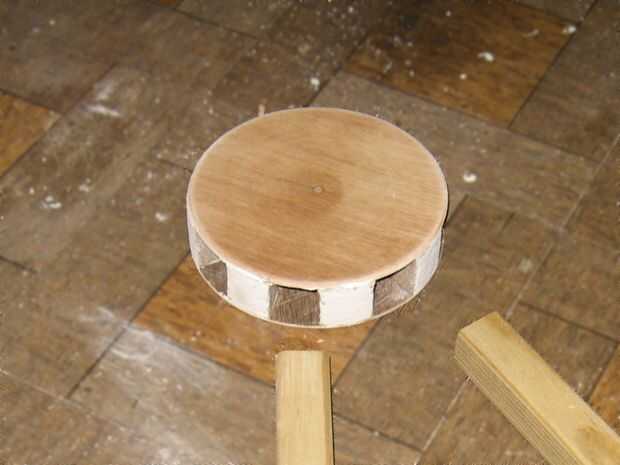 Madera superior e inferior se pega juntos formando un sándwich. Las asperezas se pueden rellenar con masilla de madera o compuesto de plaste.