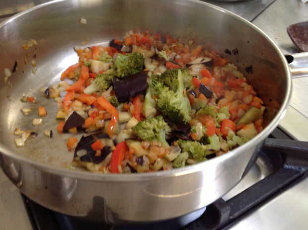 Usted no tendrá necesidad de plato va con una saludable porción de esta proteína y la vitamina rica al horno berenjenas rellenas de queso Gruyere, bebé portobellos, pimiento rojo, cebolla y tomates cocinados en una salsa de vino rojo de la almeja!Pas