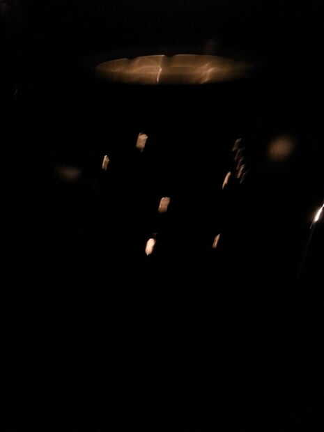 Latas de lata, latas de pintura aerosol sobrante, bondo y la parte de atrás de un ventilador de circulación.