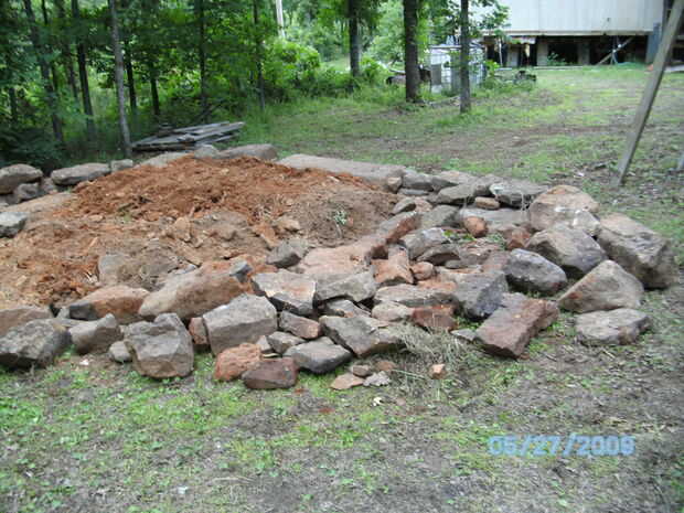 Fotos de tres, cuatro y cinco muestra literalmente toneladas de rocas colocadas para relleno con porciones de tierra apisonado en lugar varias veces cuando fui.