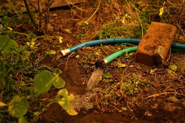 1. Agua: No hay ningún drenaje en el trazador de líneas (no confío en mí mismo para que no escape), entonces usted tiene que succionar hacia fuera. Esto es muy fácil, que sólo se ceba la manguera de sumergirse bajo el agua y moviendo alrededor hasta que todas las burbujas han desaparecido, a continuación, mantenga su mano sobre el extremo abierto para evitar aire, luego coloque el extremo en el suelo donde desea que el agua drene. Como todos recordamos de la escuela primaria, si el desagüe está en una elevación más baja que la entrada al desagüe, gravedad hará todo el trabajo para usted. Con dos mangueras, la tina fue drenada hasta aproximadamente 12" de profundidad dentro de la hora.