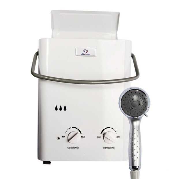 Saber que calentador de agua que iba a utilizar, la literatura me dijo que 20-80 PSI de presión de agua era ideal y que el flujo de agua era 1.5 GPM a máxima potencia. Me imaginé una bomba de agua 12V salidas 55 PSI a 3 GPM proporcionaría suficiente presión, y que sería fácil encontrar una batería de 12V grado marino para hacer funcionar la bomba.