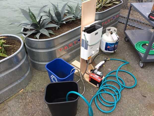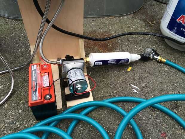 Con esta configuración, he probado la presión, temperatura y velocidad del sistema. Tardó unos 4 minutos para mover unos 6 galones de agua caliente, lo que significa que podría esperar alrededor de 5 1/2 horas para llenar la tina de 500 galones.