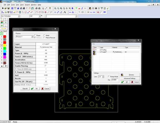 El cortador del laser no es la herramienta ideal para este uso. Si hubiera sido nuestro Shopbot funcionando yo definitivamente habría utilizado. Pero esto hizo el trabajo de un prototipo rápido. Trato de hacer la mayor parte de mis proyectos utilizando herramientas que cualquier persona puede adquirir en una ferretería, pero este era bastante ambicioso y simplemente no tengo tiempo para usar un rompecabezas y agujero de sierras para cortar los paneles complejos.