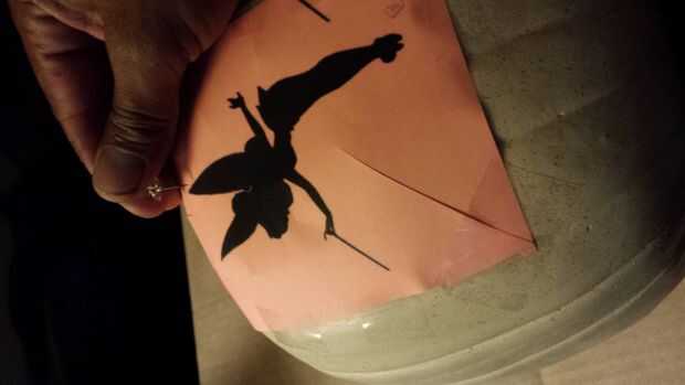 Wie man einen Tinker Bell Pixie polvo Kürbis-Schnitzen von funkins Kürbis Stellen.Paso 1: das Bild von tinkerbell Angefangen mit einem künstlichen Kürbis (jeglicher Größe tun wird), Tinker Bell silueta von Google Bild. Drucken Sie es aus und kleben S