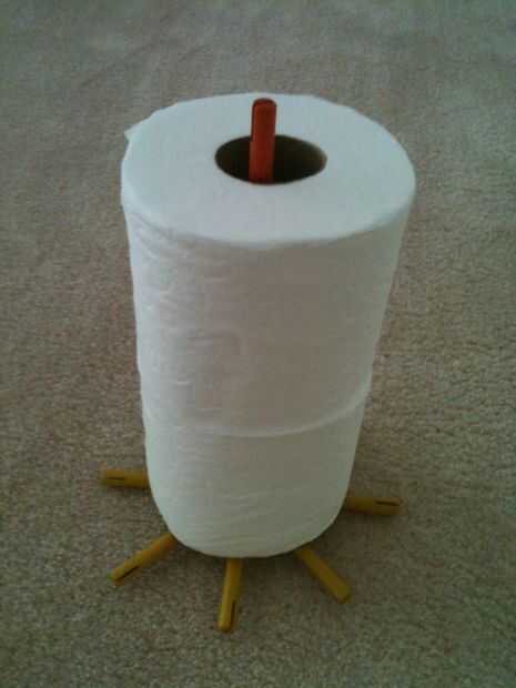 hice una de estas, ilustrado en la foto principal para un proyecto de arte humorístico en la Universidad.  Ahora que tengo una casa con ningún sostenedor de papel higiénico en el baño, pensé por qué no Cave hacia fuera y volver a instalarlo.Aquí está