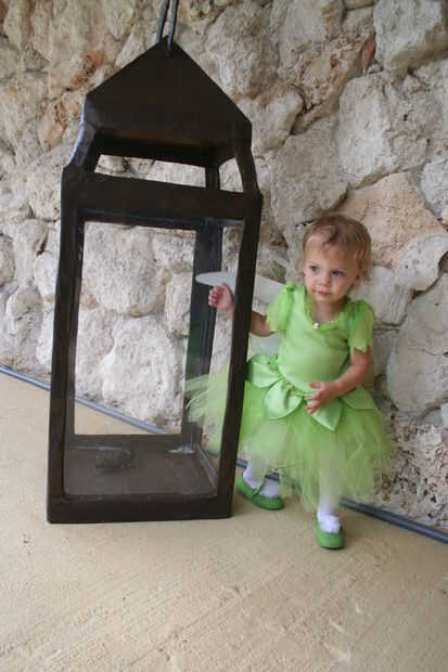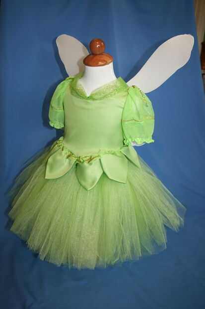 La campanita a ajuste se hace con una falda de tul y un top de Satén. No utilizo un patrón, pero hay muchos patrones disponibles en el mercado para este tipo de traje. Sin embargo, cualquier persona con conocimientos de costura básica fácilmente podría hacer un simple traje de campanita como el mío.