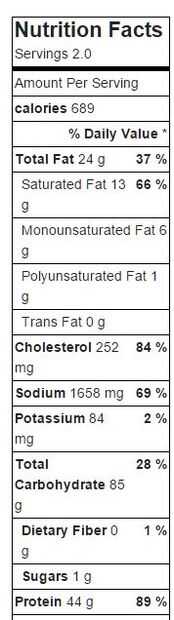 (He calculado la nutrición para esta receta a lo mejor de mi habilidad utilizando el analizador de receta de MyFitNessPal. Este análisis incluye el Linguine de tinta de calamar negro. Aunque tuve más que suficiente pasta para hacer dos porciones de esta receta, se me ocurrió un pequeño corto en el popurrí de mariscos (comí demasiado, o no cocino bastante)!