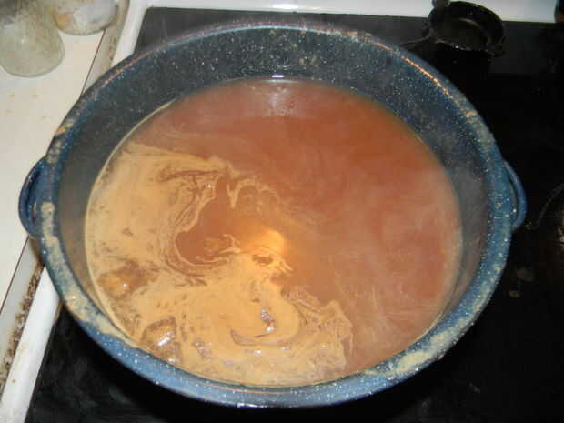 Nota: Yo guardo las hojas de estopilla para usarlas una y otra vez, pero solamente para hacer tinta. Lávalos en la máquina con detergente y un poco de lejía, dejándolas pasar por dos ciclos de enjuague. (Si todavía Huelén un lejía, dalas otro ciclo). Cuélgalas en el sol para secar. Cuando están secas, se pueden guardar en una bolsita de plástico hasta el próximo lote de tinta.