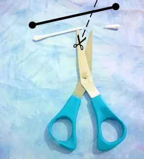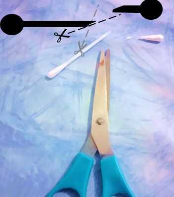 El arte consiste en cortar el coton bud diagonnally primero con un ángulo de unos 45 grados (como se muestra en la imagen)
