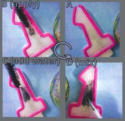 Mezclar el agua y la máscara de pestañas con la ayuda de una punta hasta obtener un líquido homogéneo