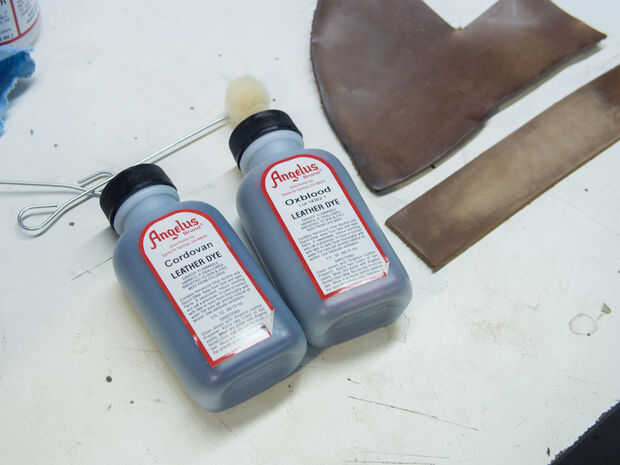 Vale la pena conseguir la materia de derecho desde el principio. Usted puede ser capaz de encontrar unos "tintes de cuero" en su ferretería local o tienda de artesanía, pero no escatima - estos tintes de base de alcohol son un poco más complicados de usar, pero producen mucho mejores resultados. Muchas tiendas no venden debido a preocupaciones de seguridad exagerada (sólo no beber o limpiar su cuerpo o lo huff). El otro bonus es que tintes Angelus tienen muy un precio razonable - una de las situaciones raras cuando el producto adecuado para el trabajo es realmente el más barato!