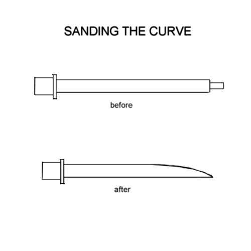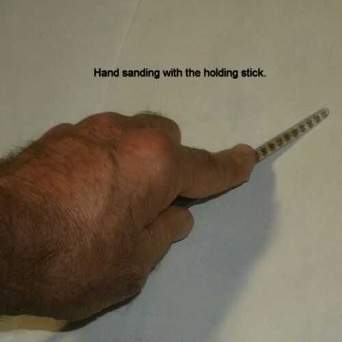 Para producción en masa, yo use una lijadora de banda montada en mi banco de trabajo, pero se pueden lijar a mano, también las curvas. Para boquillas pequeñas, pegue un pedazo de madera dentro de ellos a retener.