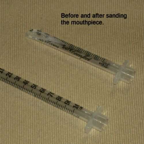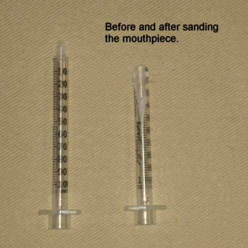 La boquilla consta de una parte rígida y una lámina adjunta que vibra. La parte rígida se hace de una jeringa de insulina 1 cc. Grandes boquillas de tubos más grandes tienden a ser más fuerte, y necesita pulmón más potencia al golpe.