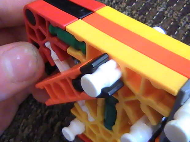 5. tomar una de las naranjas con una mano de negro y conecte a la barra blanca como esta. Prestar atención ya no está conectado de manera normal.