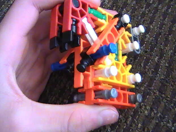 3. la articulación en una barra verde en este punto de saturación. También puede utilizar un gris oscuro en lugar de la Junta de rótula, pero tendrás que sujetar la barra verde en un tiempo y dependen de una banda elástica para sostener allí.