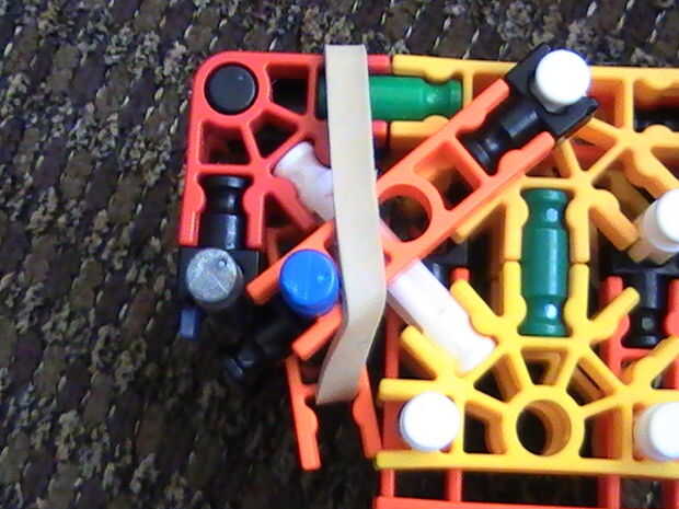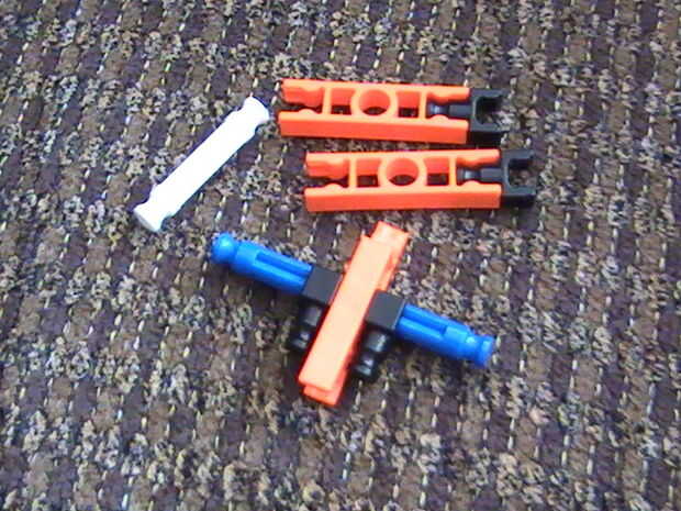 4. Tome estas piezas y para el gatillo (y una banda elástica)