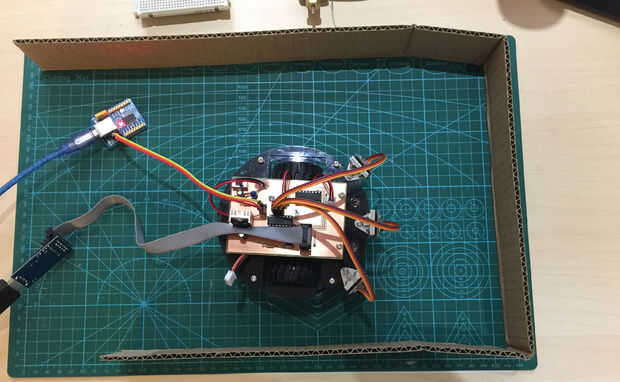 Asegúrese de que ningún obstáculo alrededor del robot cuando energía encendido. Cuando el primer calibrado, el robot a avanzar un poco. Entonces se calibrará el sensor frontal. El robot se moverá hacia adelante hasta que encuentren con un obstáculo. Aquí se moverá hacia adelante y hacia atrás a juzgar la distancia. Después de él será calibrar los sensores de lado. Gire a la derecha y ajustar el balance entre el sensor girando a izquierda y derecho.
