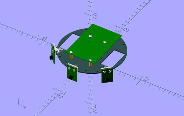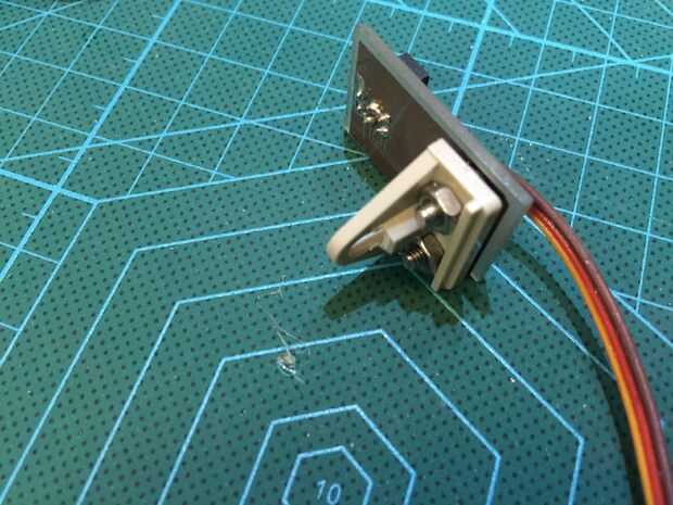 Tornillo de los sensores y la motherboard en la parte superior de la otra placa. Los sensores están conectados a la placa con la L en forma de ayuda (ver el plano o OpenSCAD archivos).