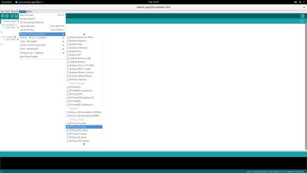 Instalar al administrador de la Junta para la base del ATTINY. Agarrar el ATTinyCore-1.0.6.1.zip, lo descomprimimos en la carpeta hardware y reinicie el IDE de Arduino. Si tienes problemas, busca en Instructables.com tutoriales (es como lo hice).