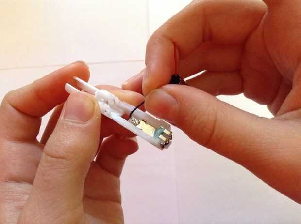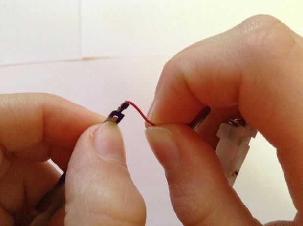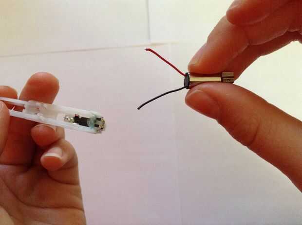 Si su cepillo de dientes es como el mío, entonces el motor se encajona una especie de plástico blanco. Hay probablemente una pequeña parte que actuaba como interruptor. Usted tendrá que quitar-debe ser fácil. Había dos clavijas que mantienen mi motor en su lugar. Simplemente estas doblar hacia atrás y tire el motor libre, teniendo cuidado de no para romper los cables. Entonces usted necesitará desconectar los cables de la pinza de la batería. Jale suavemente los empalmes de la soldadura hasta que tirón de los cables gratis. Asegúrese de no romperlas. Ahora tiene el motor! Debe tira los hilos para que aproximadamente 1/4" de alambre desnudo muestra.