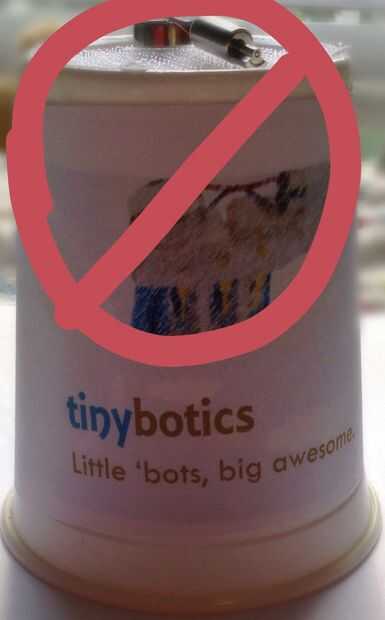 Solo una nota aquí, ten cuidado con las proporciones de tamaño de su motor y tazas. No quieres una taza de papel dinky, débil con una enorme vibromotor (ver figura 1). Usted también no desea una taza de espuma grande, bonito con el tamaño más pequeño del motor (ver figura 2). Lo que quieres es una taza pequeña con un motor pequeño o una taza grandote con un motor grandote (ver fotos 3 y 4). De lo contrario, volcará su taza o simplemente no se mueva.