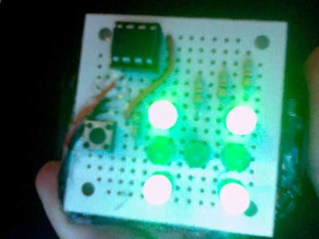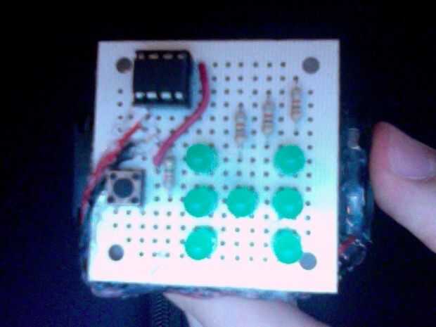 Primero muestra luz, entonces el número aleatorio y finalmente se va a dormir, consumir menos de 0.1uA hasta que alguien Pulsa el botón y despierta para empezar de nuevo, batería durará cerca de 250 años durante el sueño.