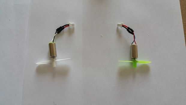 Soldar los conectores machos de motor en los motores. Colocar el rotor en el motor para que la dirección dominante del rotor (es probable que la dirección de extracción) apunta hacia el motor. Esto significará probablemente deberías colocar el rotor hacia abajo, pero usted puede siempre cambiar esto más adelante si adivinamos mal.