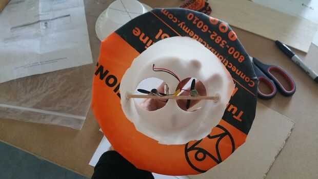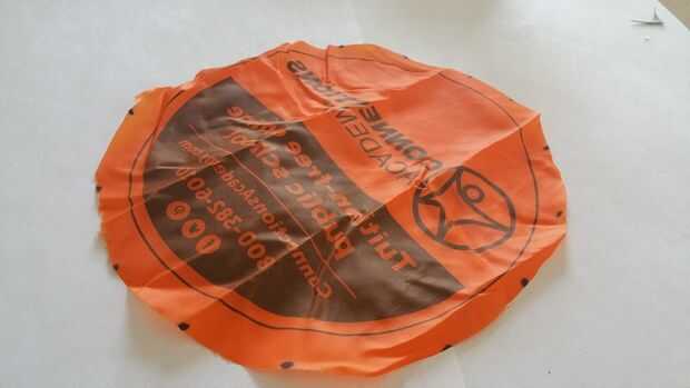 Luego se mide la distancia entre el borde más alejado de cada uno de los dos orificios del motor en el lado plano del tazón de fuente. Cortar otro círculo en la bolsa de plástico fuera del círculo que sólo se cortan. Asegúrese de que este círculo tiene el mismo diámetro que la longitud solo mide y está centrada. El resultado debe ser una arandela de la bolsa de plástico con un ancho anillo de cerca de tres cuartos de una pulgada completa.