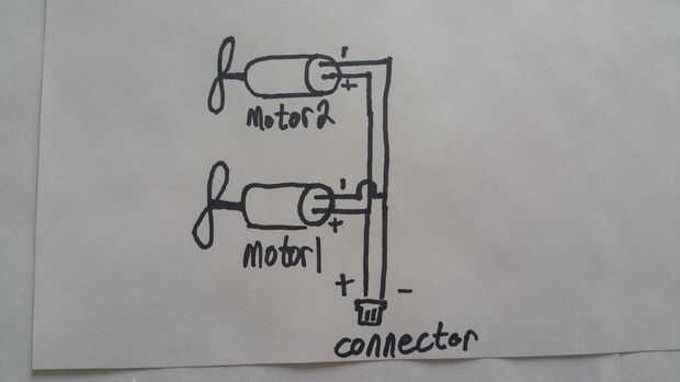 Tome algunos cables y un conector del motor y cable uno de los motores en sentido antihorario en paralelo con el motor en sentido horario, con la conexión que en el conector del motor. Envolver las conexiones en tubo del encogimiento del calor o con cinta aislante.