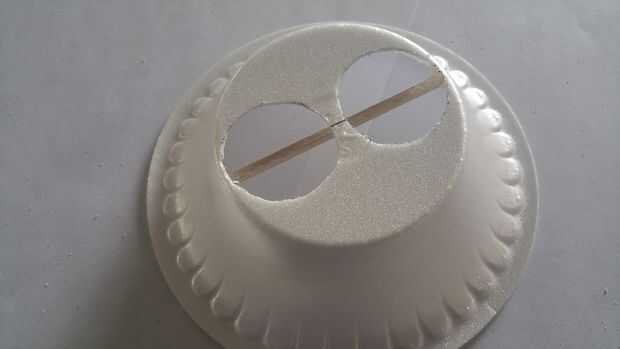Tomar sus motores y mantenerlos por lo que los rotores estén al ras con el lado plano del tazón de fuente. Observar cómo lejos abajo en el recipiente tendrá que conectar este pedazo de basswood y además se nota cómo lejos el centro de este rayo tiene que fijarse (queremos que los motores en el centro, no el conector de madera). Una vez que ha marcado el bol con las posiciones pegados y ha lijado la madera para hacer un ajuste ceñido, caliente pegue el rayo Tilo dentro del recipiente (o en la parte superior el lado plano si están montando los motores en la parte superior del tazón de fuente).