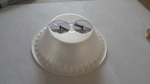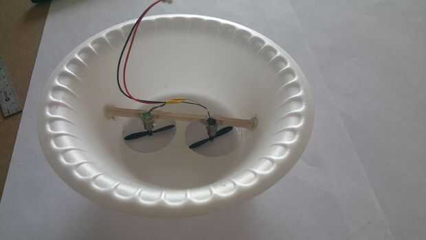 Pegamento caliente los motores conectados en paralelo a la viga de madera sólo insertó. Asegúrese de que los rotores son de nivel uno con el otro y al ras con los dos agujeros en el recipiente.