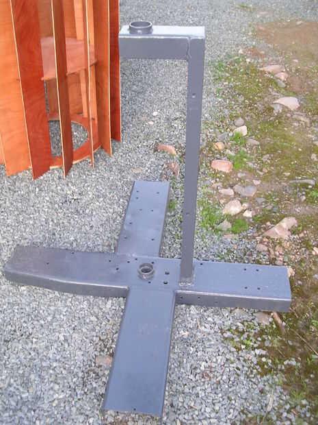 El soporte para mi VAWT fue hecho de longitudes de chasis de camión viejo que estaba en el montón de chatarra. Yo trabajaba con lo a la mano para que no se dan dimensiones que su acerca de 1mtr alto y la base se centra en el eje o los cojinetes.