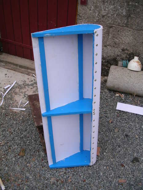 Una vez que la parte plana se piel después había añadido pegamento en el borde curvado y sujeta la piel a su posición alrededor de la curva antes de atornillarlo en su lugar.